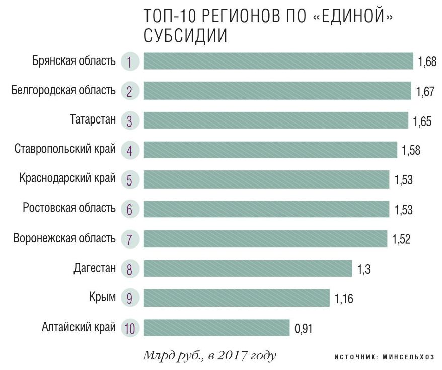Сергей Ляшко тоже положительно оценивает «единую» субсидию. «Теперь это более эффективная и справедливая мера, — комментирует он. — Страна большая, у регионов разные специализации, и понятно, что Воронежской области субсидия на оленеводство не нужна. При этом власти в регионах лучше знают, что у них в приоритете и что нужно поддерживать».