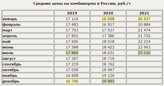 Средняя цена на комбикорма в нашей стране в июле 2021 г. установилась на уровне 23,1 тыс. руб./т - это на 0,6% больше, чем в предыдущем месяце, и на 24,0% больше, чем в июле 2020 года. С начала года цена выросла на 13,1%.