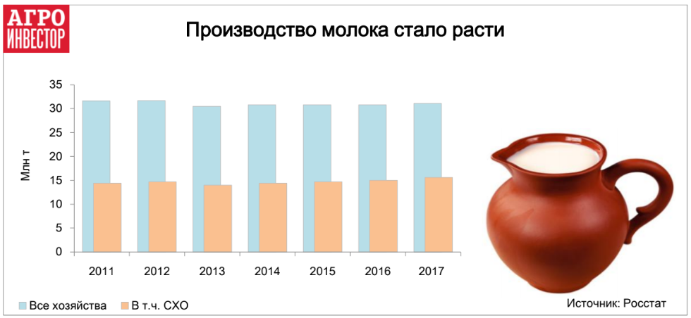 По молоку до необходимых по Доктрине 90% все еще далеко, хотя и в этом секторе началось оживление на фоне увеличения господдержки. В прошлом году впервые за долгое время валовой надой молока в стране вырос больше уровня статпогрешности, прибавив 1,2% по всем хозяйствам и 3,8% в сельхозорганизациях. Самообеспеченность молоком возросла с 77% в 2014 году до 82,4% в 2017-м.