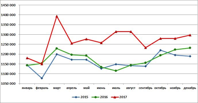 За период с января 2015 г. минимальный объём производства комбикормов для птиц в России зафиксирован в феврале 2015 года - 1077,1 тыс.тонн, напоминает SoyaNews. Объём же производства, достигнутый в марте 2017 г. - 1393,2 тыс.тонн - стал максимальным.
