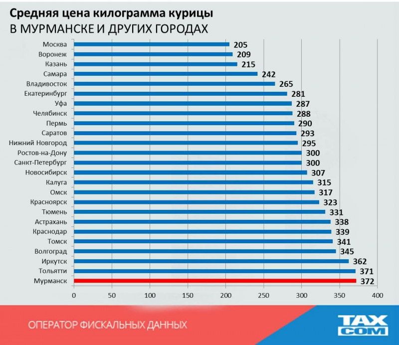 Оператор фискальных данных «Такском» составил рейтинг российских городов с самой низкой средней ценой на курицу. За основу взяли информацию с кассовых чеков за октябрь 2017 года – ноябрь 2018 года.