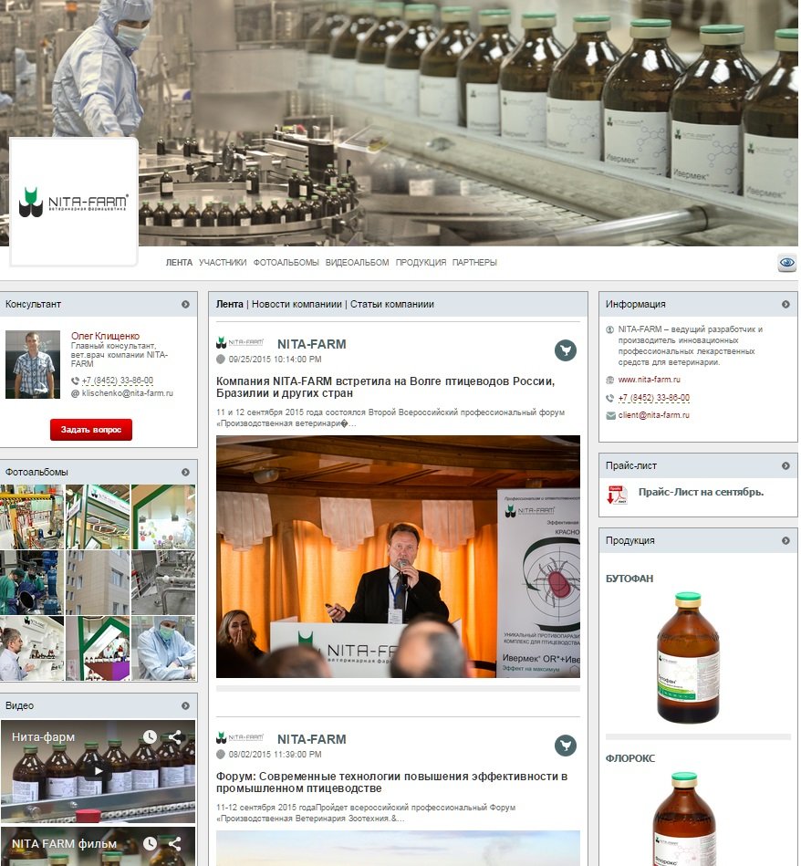 6 - Страница компании - основа взаимодействия с покупателями. Включает размещение новостей, статей, советов экспертов, тесты, мнение, календарь мероприятий, продукция компании, видео, вебинары и другие разделы проекта для взаимодействия с аудиторией. Бонус - размещение баннера 1000х150 пикселей в одном из разделов проекта.